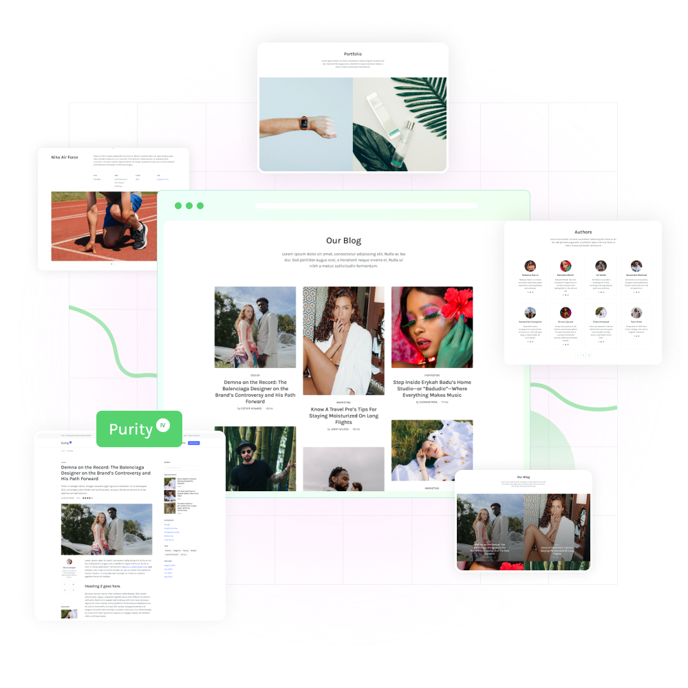 Purity IV offers a sleek and modern design with multiple layout options that can be customized to match your brand's identity.